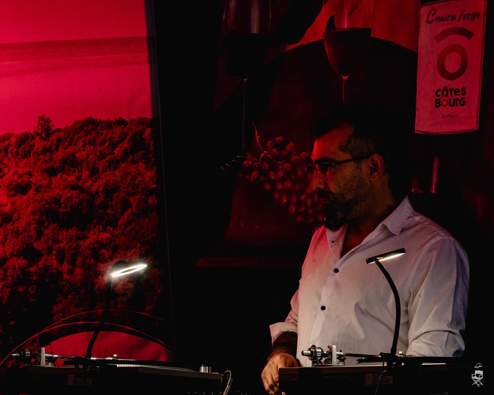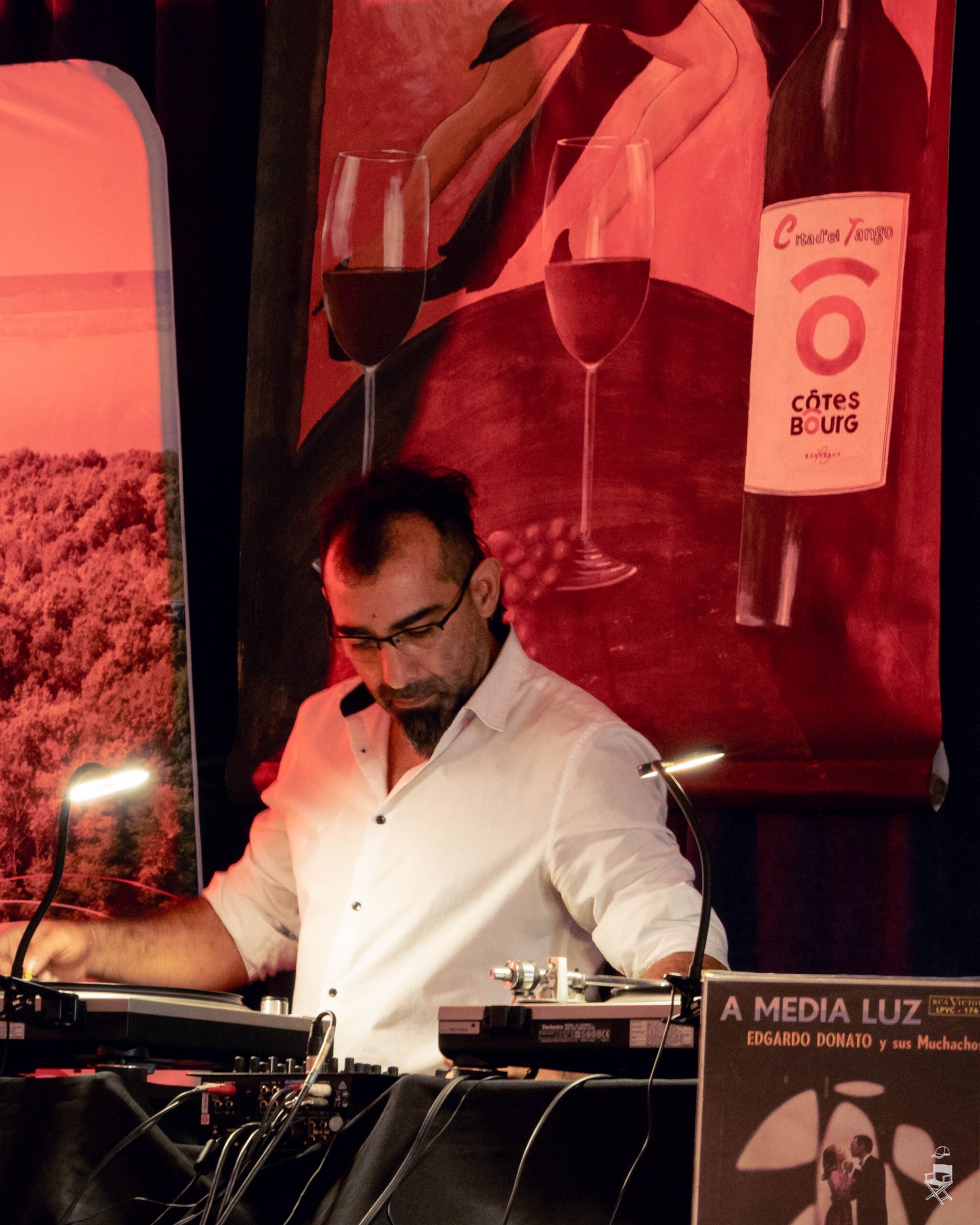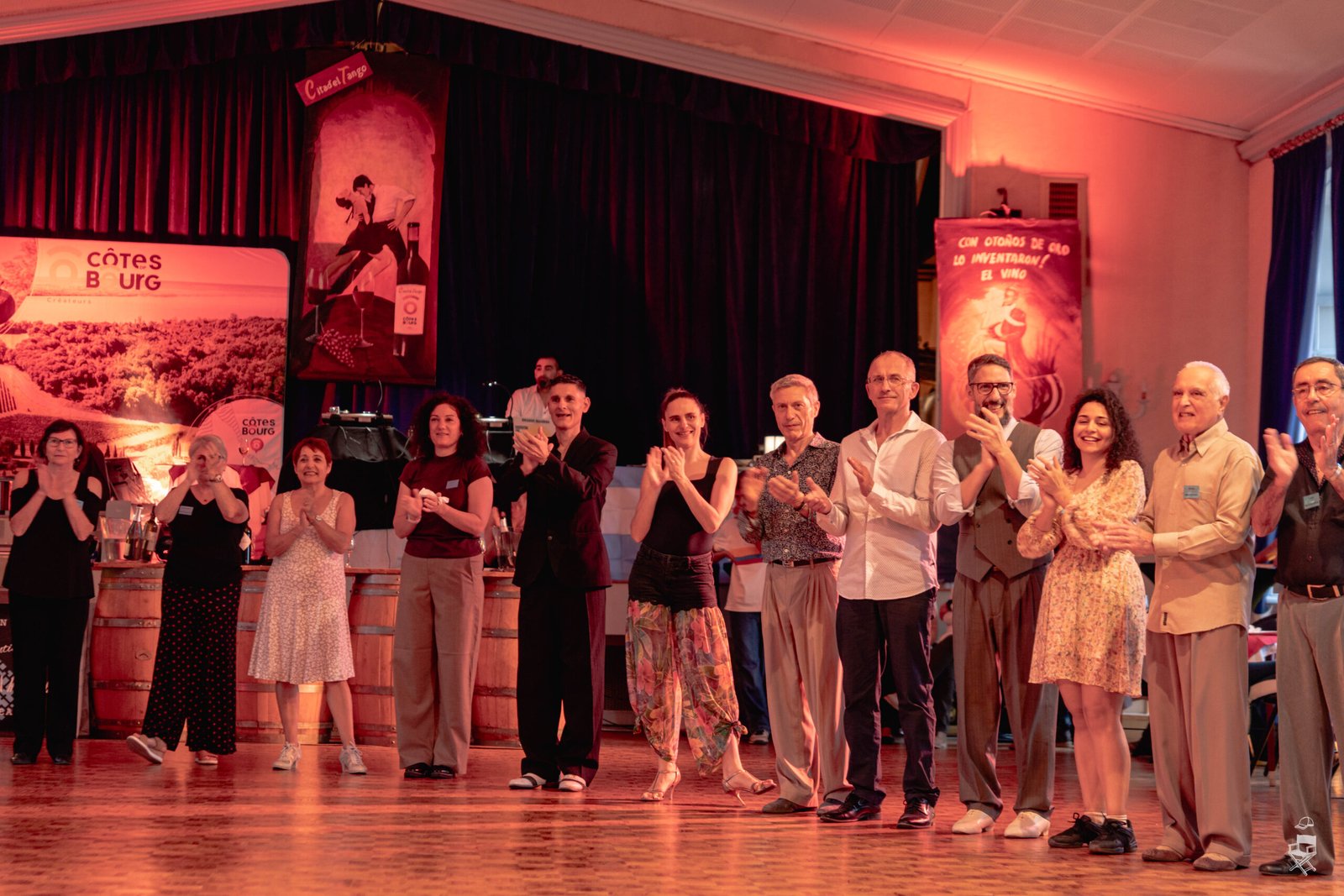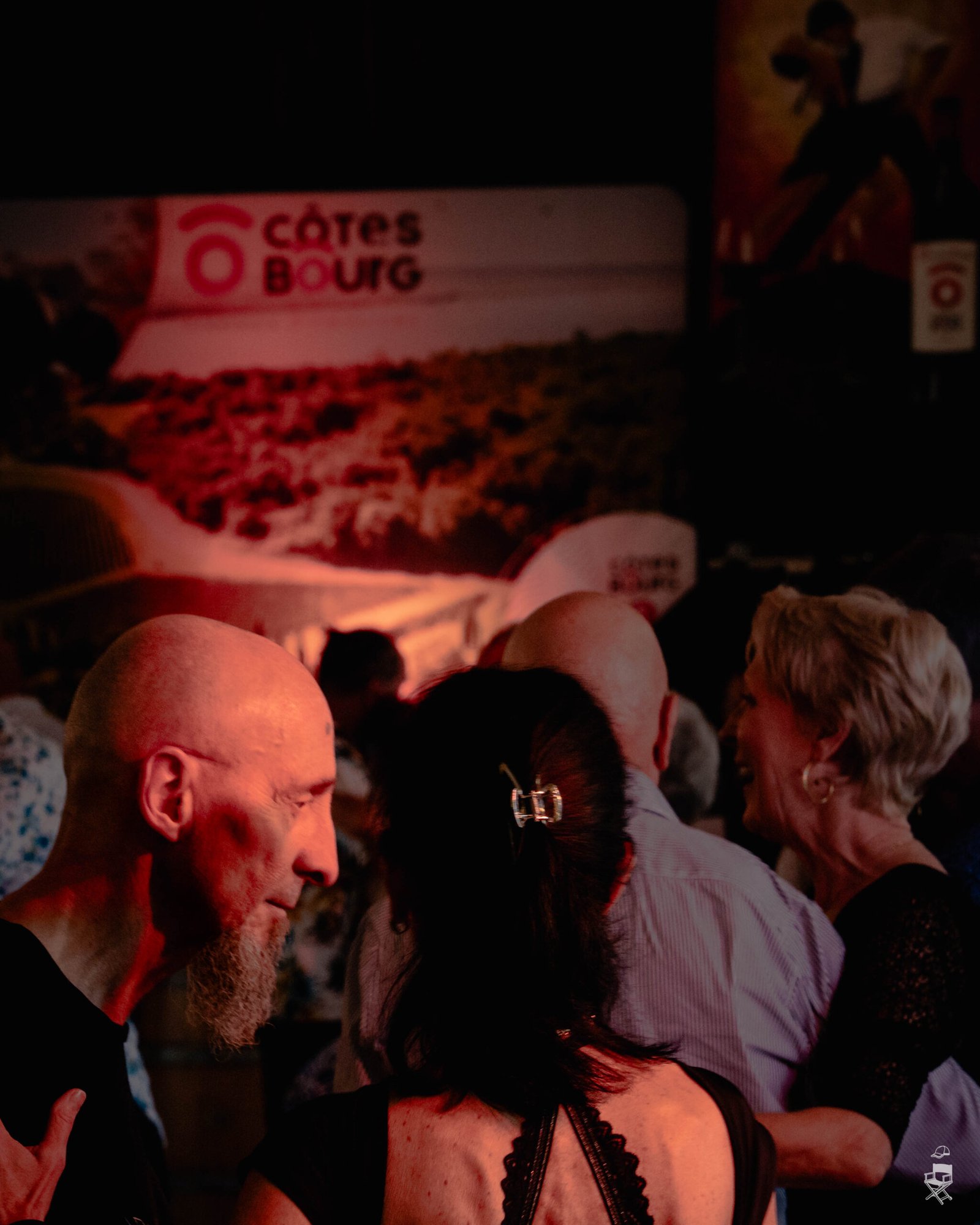Les teintes chaudes, avec des nuances de rouge, de rouge clair et de jaune, font directement écho au vin, omniprésent durant le festival. Le vin rouge, le vin blanc, les verres partagés, la convivialité… Ces couleurs participent à cette atmosphère enveloppante, presque charnelle, que l’on associe naturellement au tango.